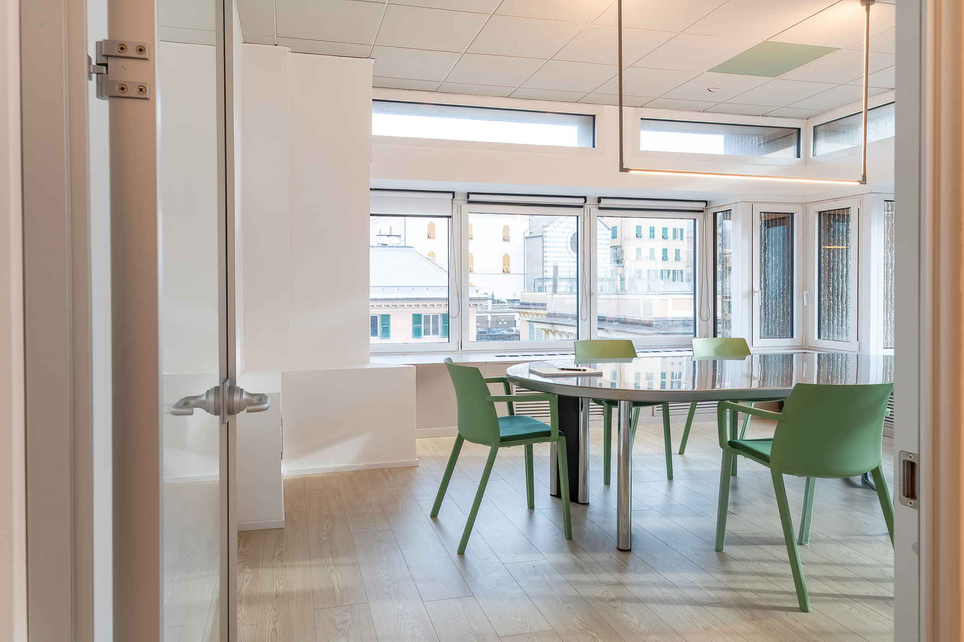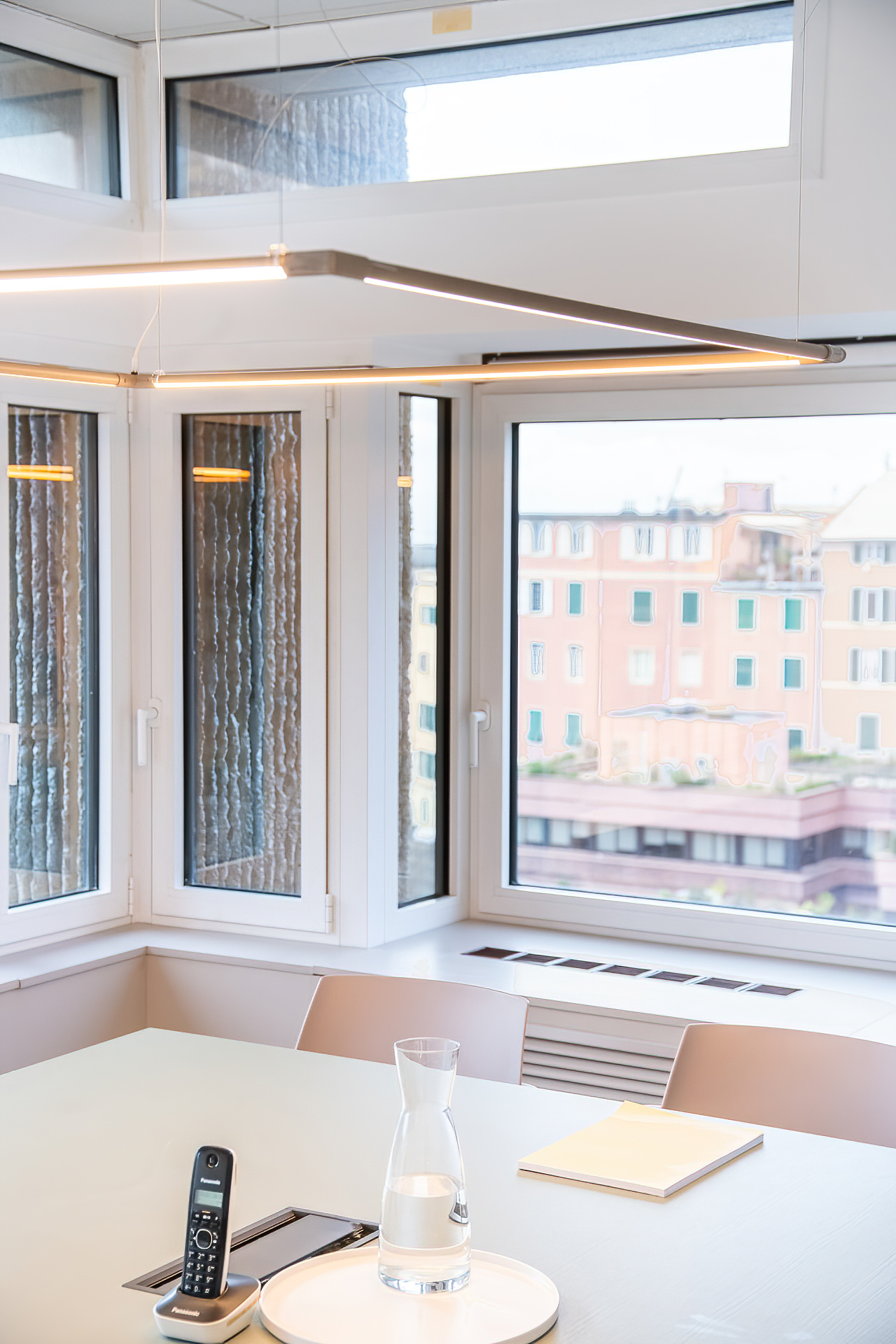 Esigenza del progetto: documentare la completa ristrutturazione e il nuovo arredo di un attico trasformato in uffici moderni, curato da un architetto che desiderava immagini professionali da utilizzare sul proprio sito e sui social.