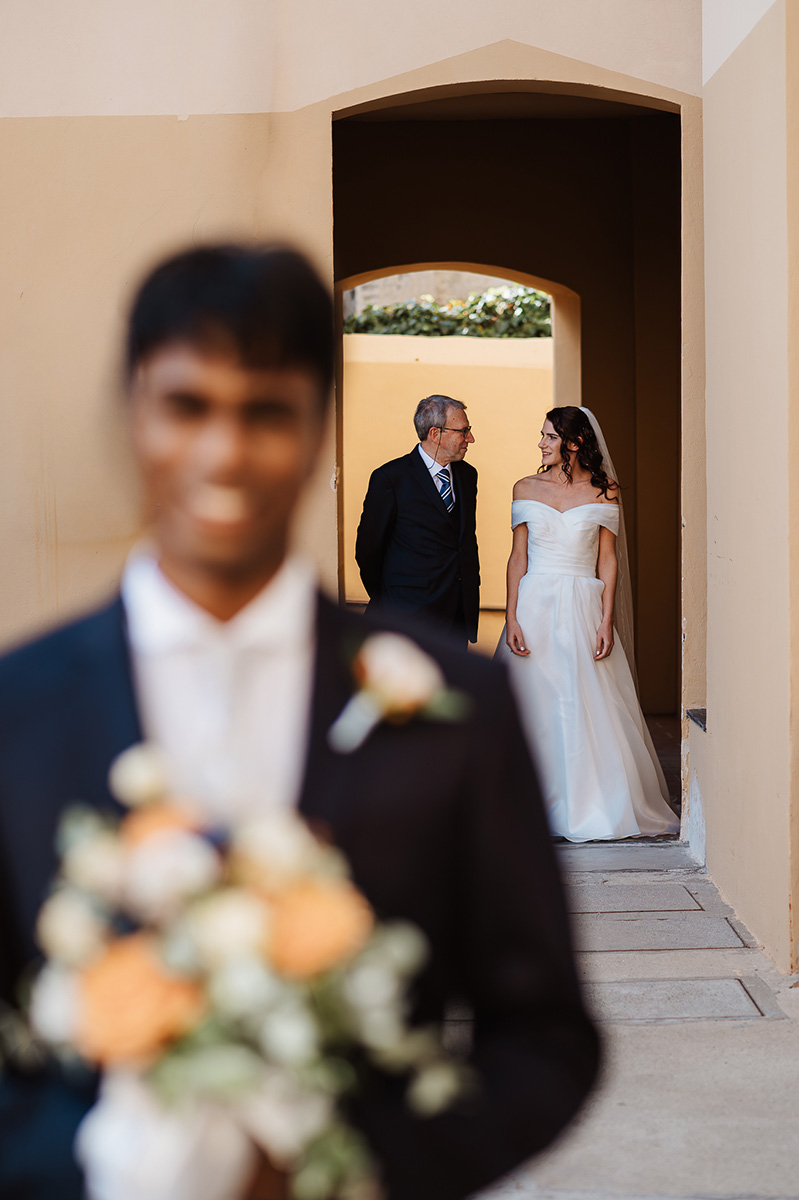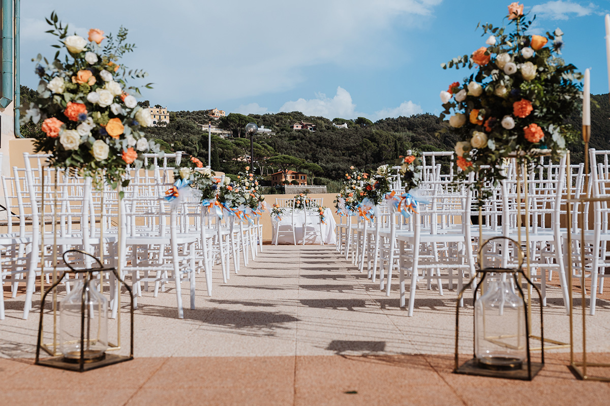 La giornata è iniziata all’Ex Convento dell’Annunziata, una terrazza sul mare che ha regalato agli sposi un panorama mozzafiato durante la cerimonia.
