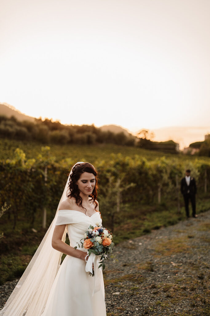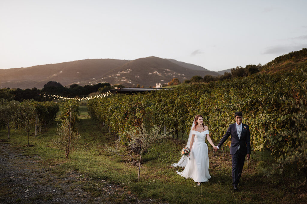 Il ricevimento si è poi svolto alla Cantina degli Abissi, un luogo suggestivo immerso in una valle tra le colline di Sestri Levante, dove l’atmosfera intima e naturale ha reso ogni momento speciale.
